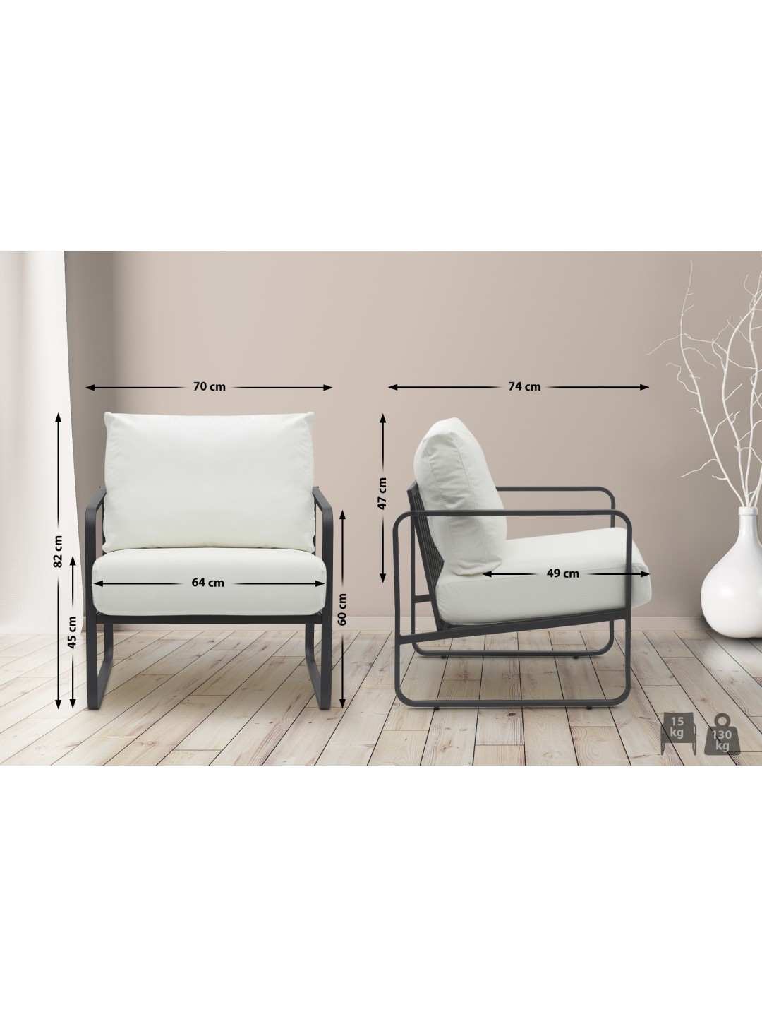 Ligstoel Manea kunstleer, wit