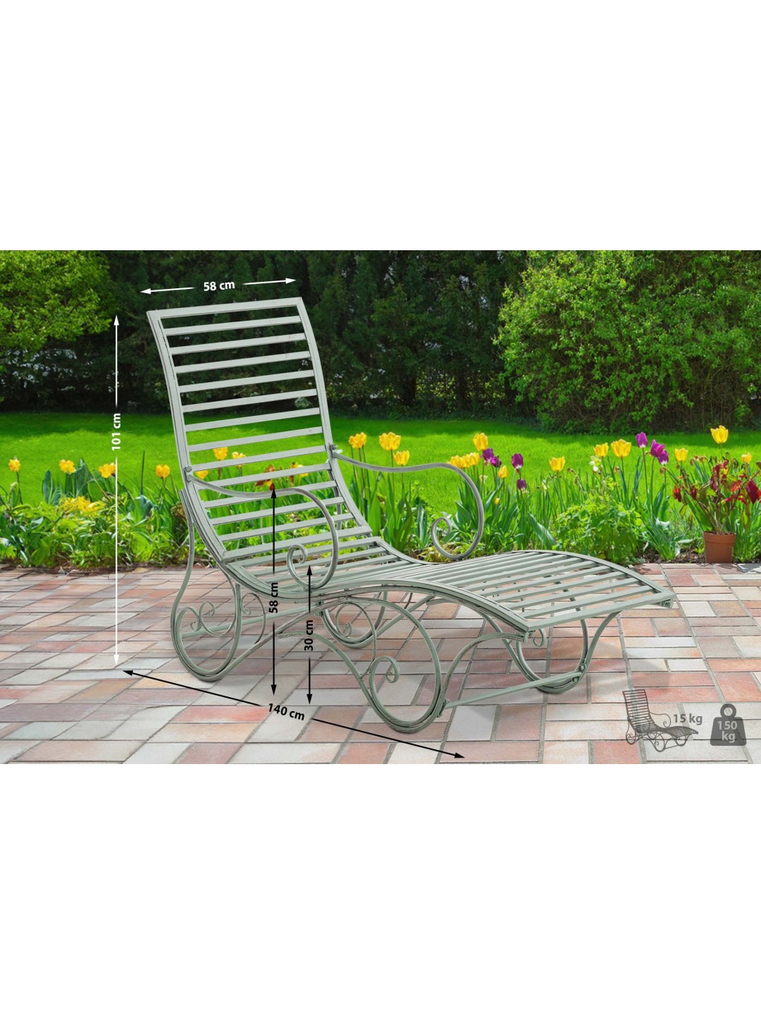 Tuinligstoel Amiens, antiek groen